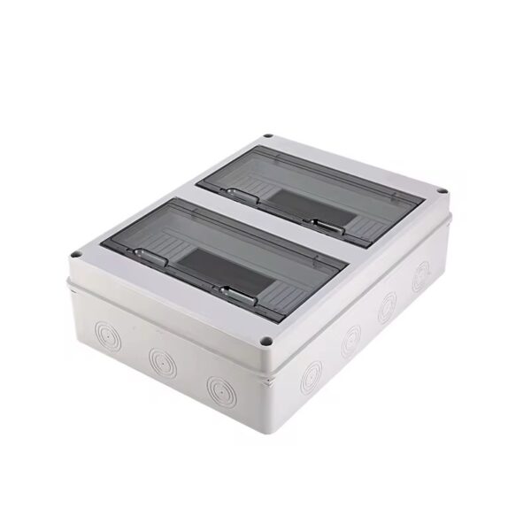 The 24-Way Weatherproof Distribution Box is a professional-grade, high-capacity solution for complex electrical systems. Featuring a space-saving dual-row design, it houses up to 24 modules, making it perfect for main distribution boards, large solar PV installations, and multi-circuit industrial setups. Its IP65 rating ensures total protection against Lebanon’s varied weather conditions, from coastal salt air to mountain snow.