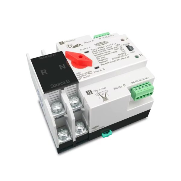Ensure continuous and reliable power for your home, shop, or solar installation with the TOMZN TQO5-100PV/2 Single-Phase Automatic Transfer Switch (ATS).
