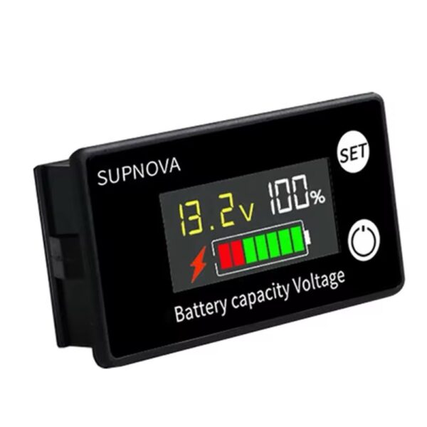 Display: Digital voltage, capacity percentage, battery level bars