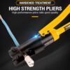 It features a hydraulic mechanism that delivers a powerful 70 kN crimping force, ensuring secure and reliable connections.