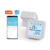 This smart temperature and humidity sensor provides accurate real-time monitoring for indoor environments. The clear LCD screen displays temperature, humidity levels, and comfort indicators (Dry, Comfort, Wet).