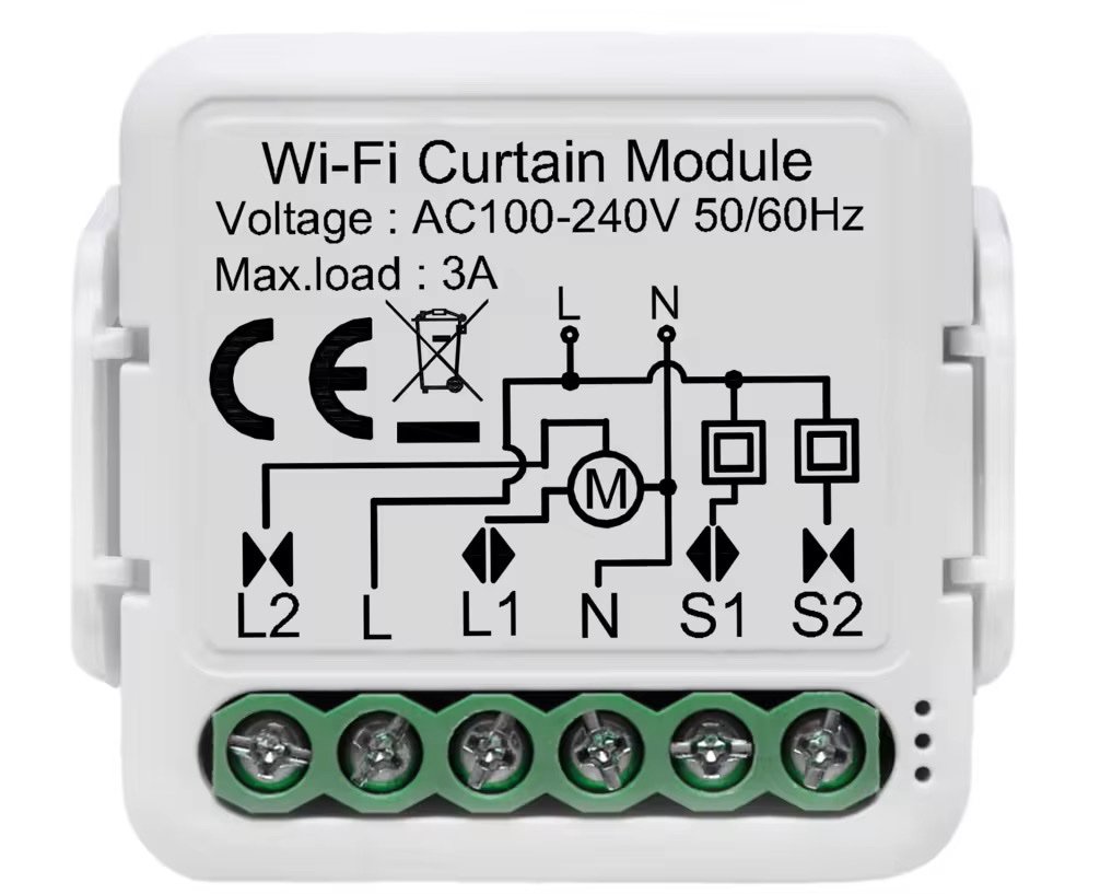 Upgrade your traditional curtain motor with this Wi-Fi Curtain Module and enjoy full smart control from your smartphone or voice assistant. Designed to work with AC motors (100–240V, 50/60Hz), this module lets you open, close, or stop your curtains remotely through your preferred smart home app.