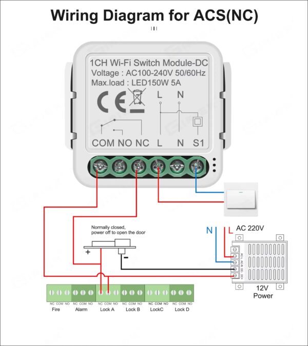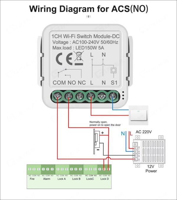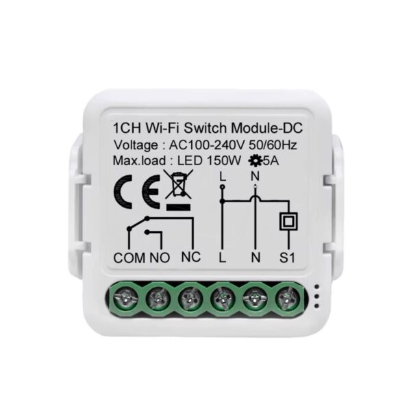 This 1 Channel WiFi Smart Dry Contact Module provides a volt-free (dry contact) relay output with COM / NO / NC terminals, making it ideal for professional automation systems that require contact closure without output voltage.