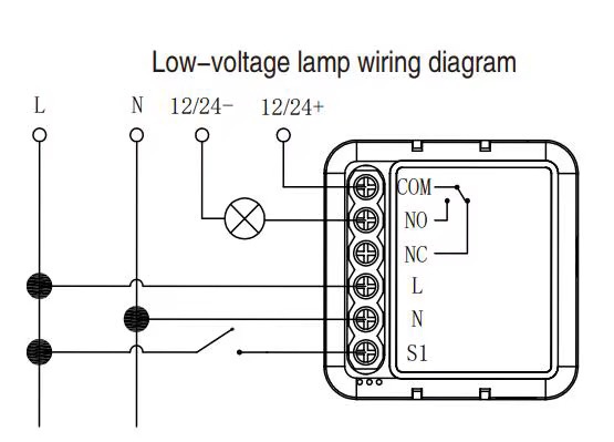• Terminals: COM / NO / NC / L / N / S1